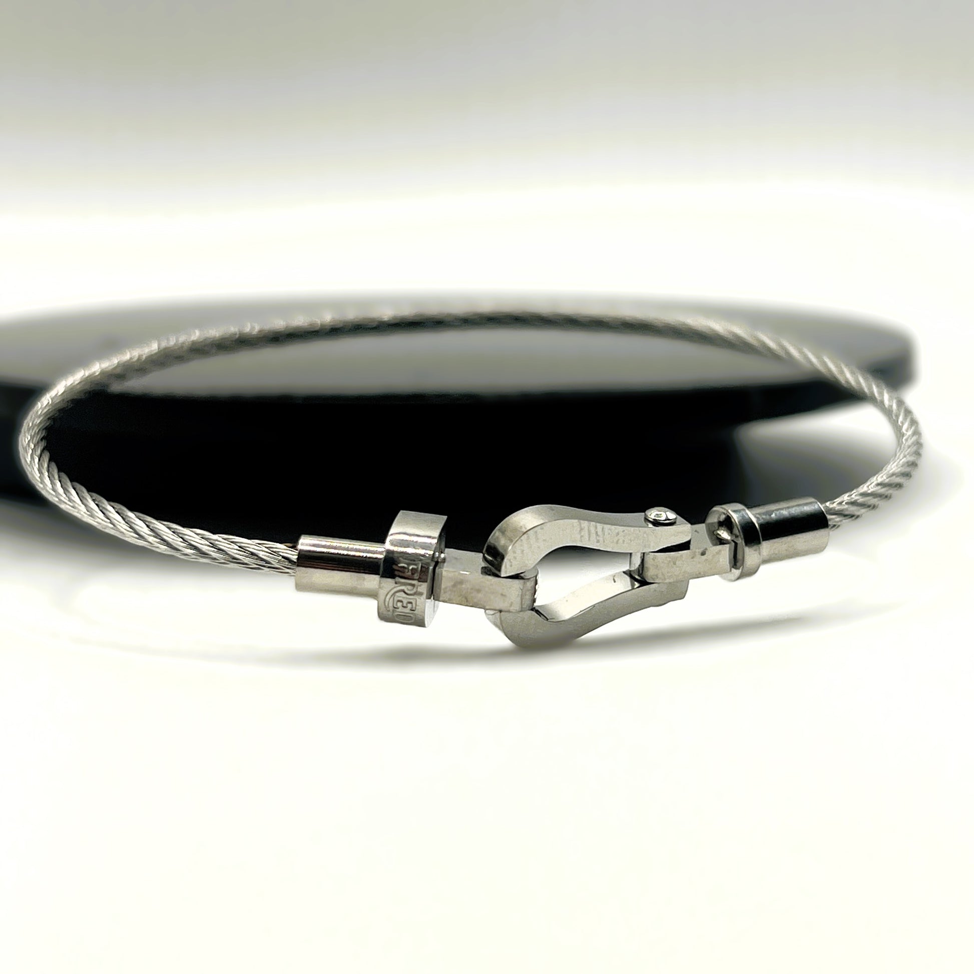Le bracelet Argent Titan revisite le design emblématique du câble marin en acier inoxydable argenté. Avec son câble fin et son fermoir poli, il offre un style discret mais affirmé, parfait pour ceux qui recherchent élégance et modernité au quotidien.