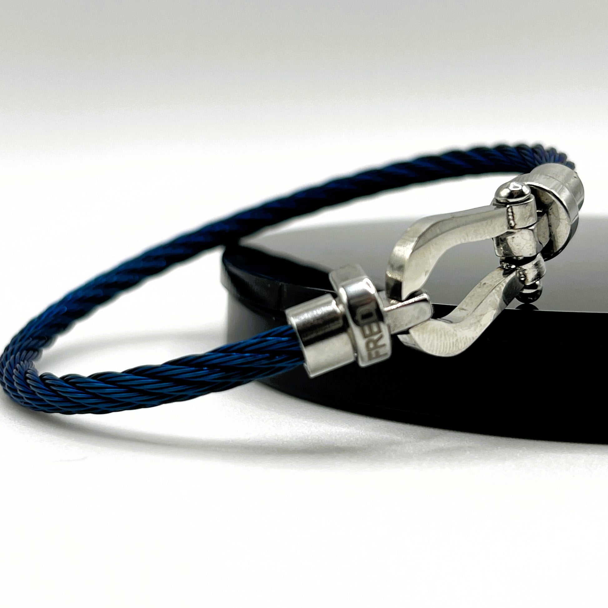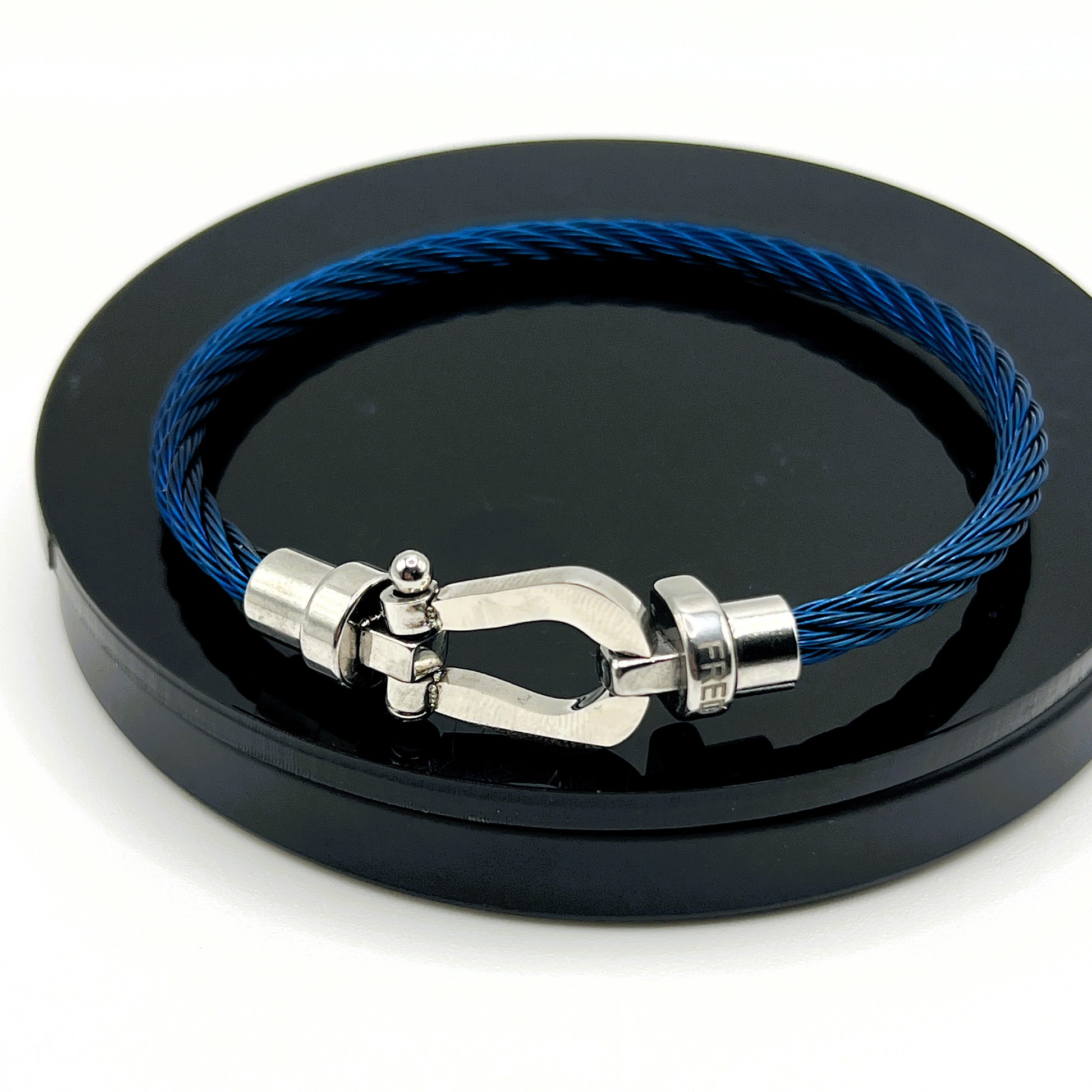 Le bracelet Énergie Bleue – Câble Large exprime puissance et assurance. Réalisé en acier inoxydable, son câble bleu imposant s’associe à un fermoir argenté poli pour un style affirmé et moderne. Une pièce audacieuse qui incarne force et élégance à la fois.