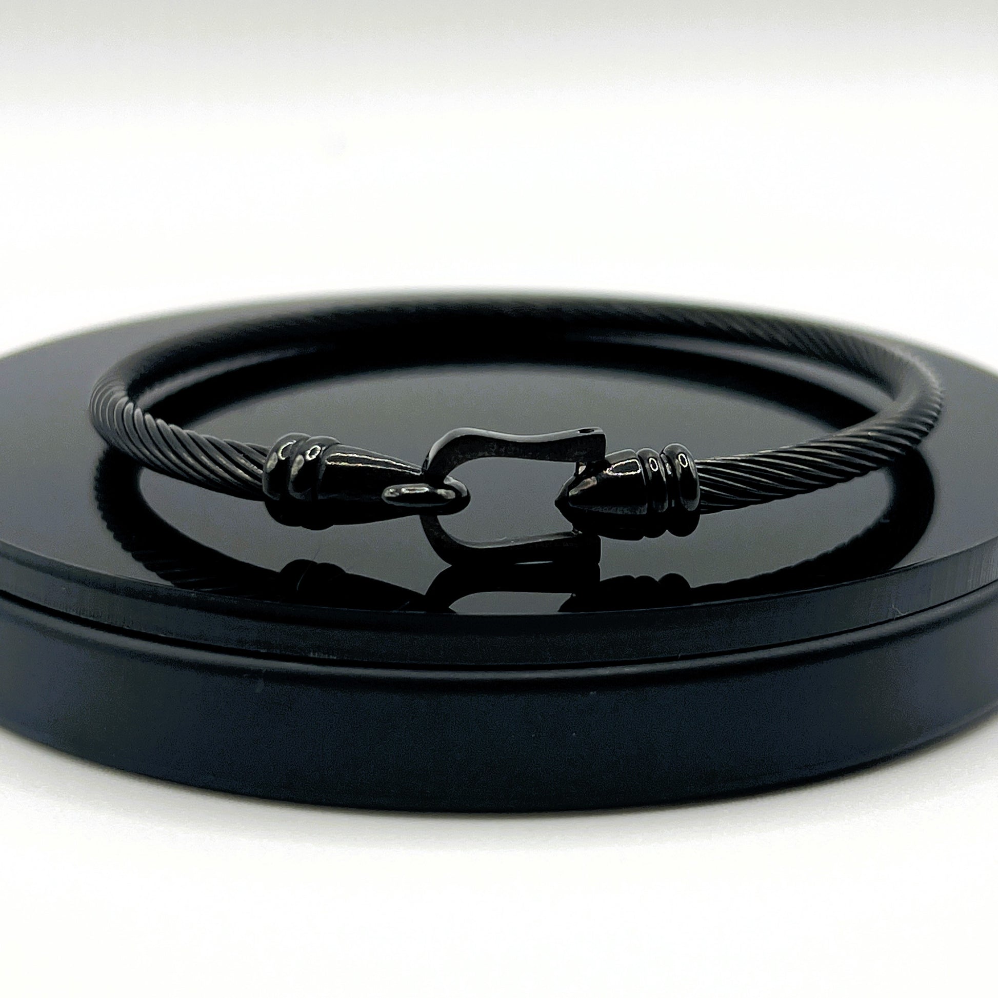 Le bracelet Éclipse Noire impose son style avec une élégance ténébreuse. Entièrement réalisé en acier inoxydable noir, il incarne la puissance brute et le mystère. Son design câble marin et son fermoir poli en font un bijou audacieux, idéal pour ceux qui veulent affirmer leur caractère avec intensité.