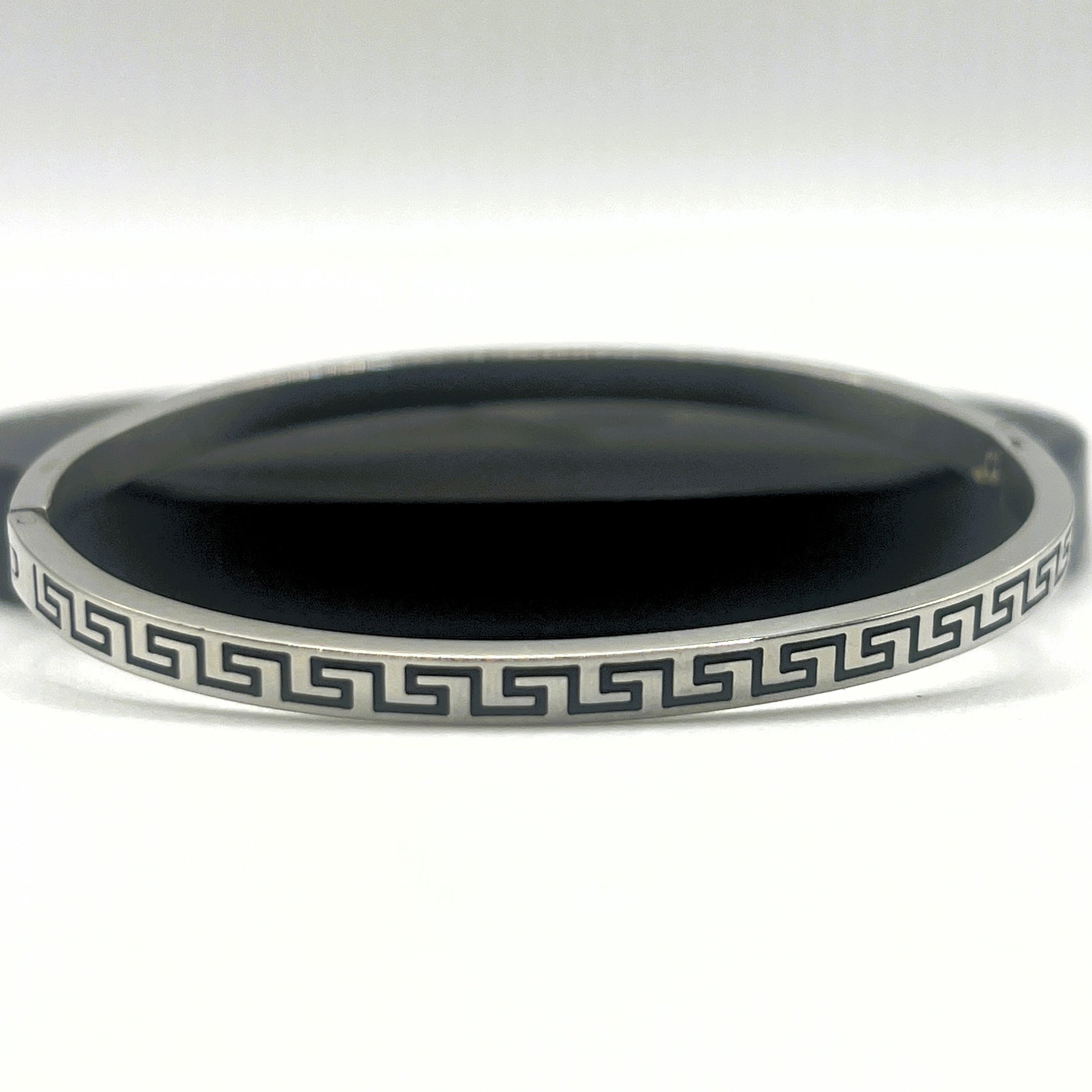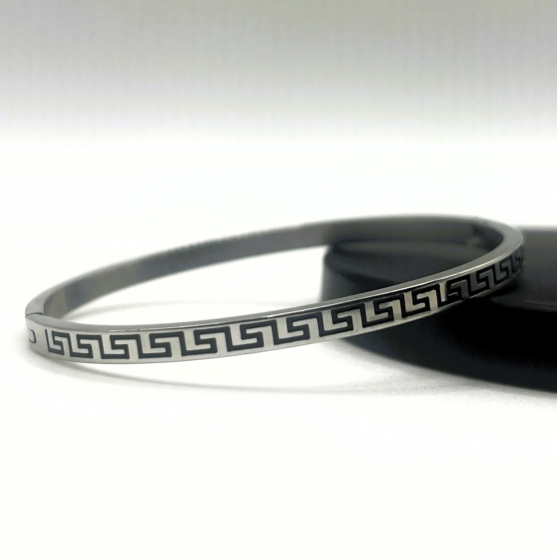 Le bracelet Argent Impérial reflète le prestige et la tradition. Réalisé en acier inoxydable argenté, il est orné du motif grec emblématique, symbole d’éternité et de puissance. Élégant et intemporel, il s’impose comme un bijou raffiné, parfait pour affirmer un style sophistiqué avec caractère.