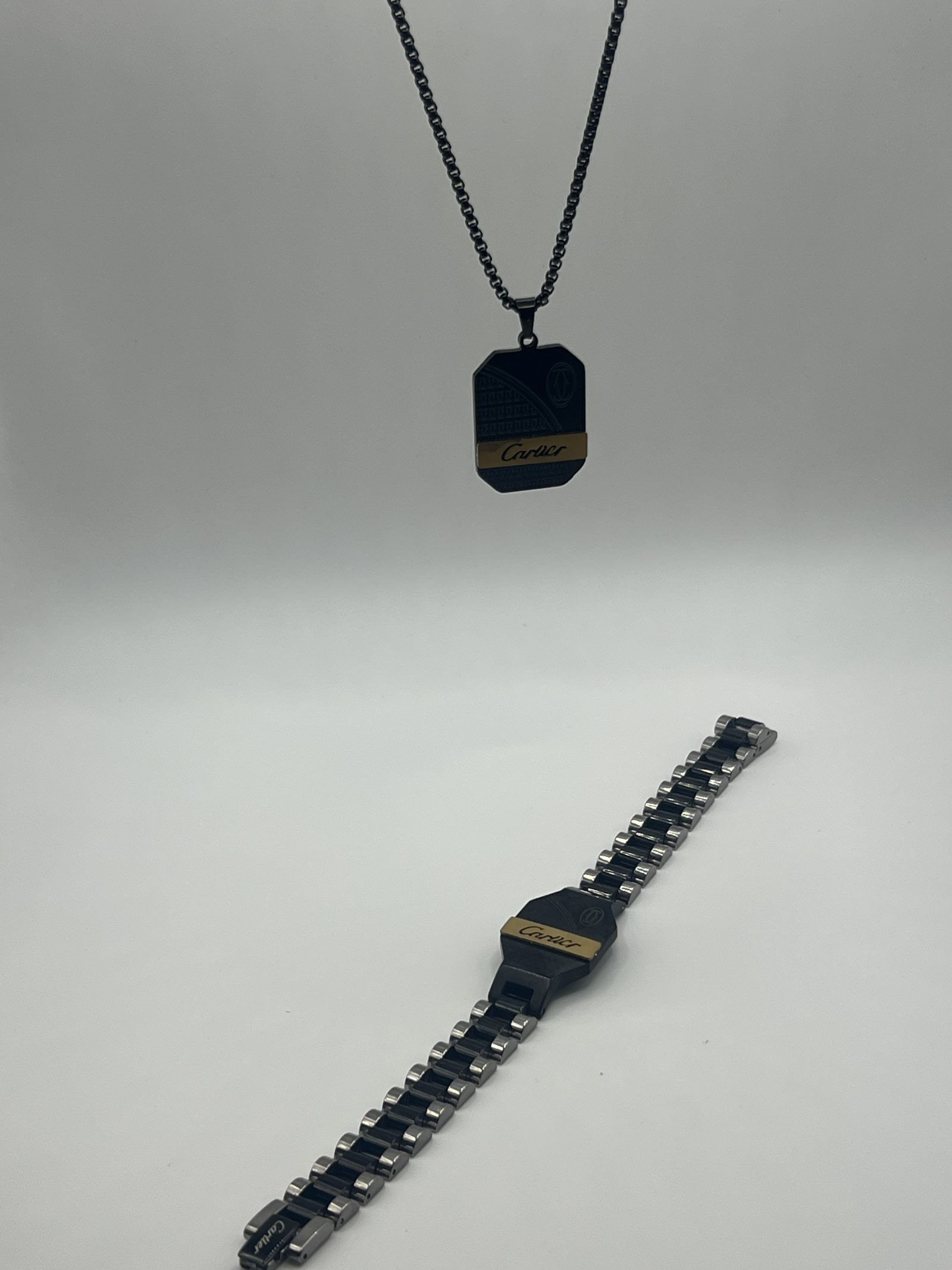 Le Set Legatus associe un collier et un bracelet en acier inoxydable, jouant sur les nuances de gris et de noir pour un contraste élégant. Ensemble, ils incarnent équilibre, puissance et raffinement.